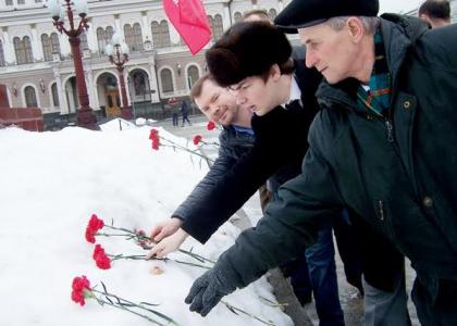 К Вечному огню в парке Горького и памятнику В.И. Ленина на площади Свободы были возложены цветы.