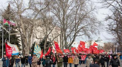 этапом масштабной акции стала демонстрация под красными знаменами, которая