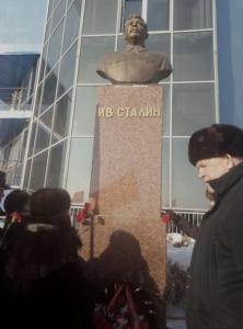 Затем они возложили живые гвоздики к памятнику Сталину.
