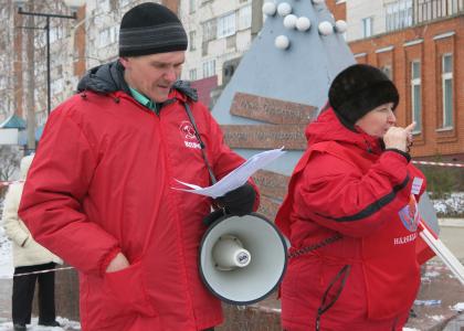 и союзники КПРФ, неравнодушные горожане. Над головами митингующих развивались