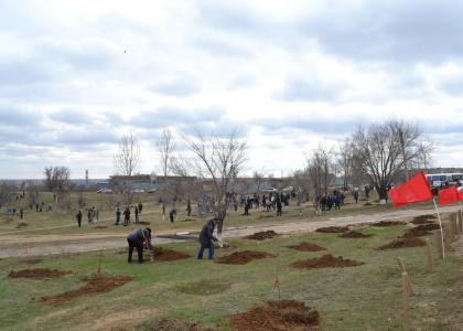 произведена поливка. Каждое деревце было украшено красными ленточками. Совместная дружная работа спорилась, за
