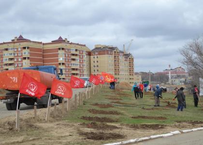 Аллею в честь 100-летия Великой Октябрьской революции заложили 21 марта в столице Калмыкии элистинские коммунисты. На крутом берегу Колонского пруда в этот день было посажено 100 саженцев акации и вяза.