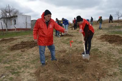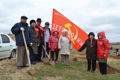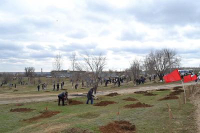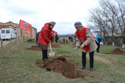 произведена поливка. Каждое деревце было украшено красными ленточками. Совместная дружная работа спорилась, за