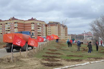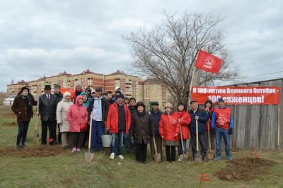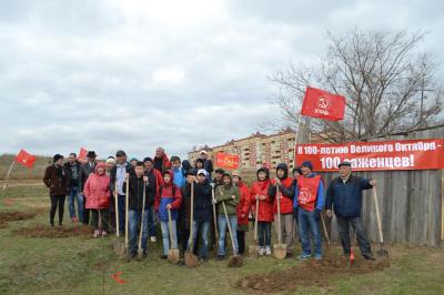Аллею в честь 100-летия Великой Октябрьской революции заложили 21 марта в столице Калмыкии элистинские коммунисты. На крутом берегу Колонского пруда в этот день было посажено 100 саженцев акации и вяза.