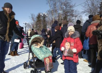 26 марта в Охе (Сахалинская область) проходит санкционированный митинг в защиту избранного мэра Сергея Гусева. На протестное мероприятие, организованное местным отделением КПРФ, вышло, по оценке присутствующих, около 500 охинцев. И подавляющее большинство жителей города выражают свою солидарность с митингующими и возмущены произволом местной избирательной комиссии, решившей украсть победу у победившего на выборах кандидата от КПРФ.