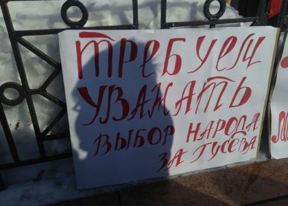 "Требуем восстановить выбор народа!", "Гусев наш мэр!", "Мы за честного мэра, мы за Гусева!", "Нам не безразлична судьба Охи! Охинскую ТИК - в отставку!" - такие лозунги можно увидеть на транспарантах протестующих. Произвол и беспредел местного избиркома, попрание свободного и честного результата голосования возмутили охинцев, желающих, чтобы власть уважала их выбор, чтобы мэром стал победивший кандидат. Местные коммунисты и активисты из числа горожан намерены добиваться того, чтобы Сергей Гусев стал в кратчайшие сроки мэром и приступил к исполнению своих обязанностей - такова воля народа!