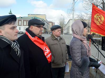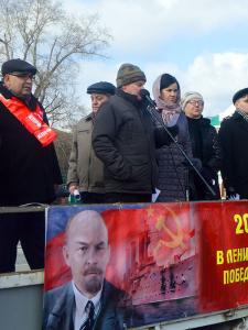Открыл мероприятие первый секретарь Барнаульского горкома КПРФ, депутат АКЗС Андрей Сартаков. Среди выступающих на митинге были: первый секретарь Алтайского крайкома КПРФ, руководитель фракции КПРФ в АКЗС Мария Прусакова, секретарь Барнаульского горкома КПРФ, депутат Барнаульской гордумы Анатолий Барсуков, депутаты Барнаульской гордумы Лариса Идолова и Иван Карпов, коммунисты из Индустриального, Железнодорожного и Ленинского районов Виктор Юркин, Андрей Кирьяков, Евгений Литоренко, а также молодой коммунист и комсомольский активист Александр Мишин.