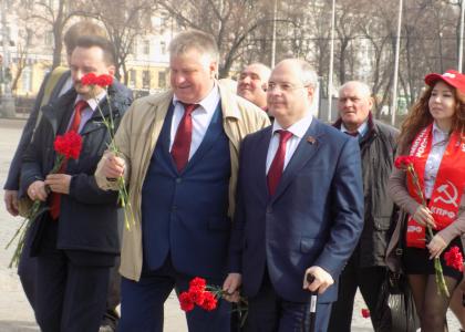 Начался этот день с возложения цветов активом Воронежского областного отделения КПРФ к подножию памятника Владимиру Ильичу Ленину на одноименной площади Воронежа.