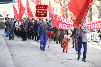 12 апреля коммунисты города Симферополя, ветераны Вооруженных Сил, общественные организации и жители Симферополя торжественно отметили 56-ю годовщину со дня полета первого космонавта планеты, коммуниста Юрия Гагарина. Мероприятие состоялось у мемориальной доски первому космонавту, расположенной на здании МДЦ «Артек» по улице Гагарина. Участники держали лозунги: «Да здравствует советская космонавтика!», «Он сказал – «Поехали!», «Требуем поддержки отечественной науки», а также знамя СССР и знамена КПРФ.