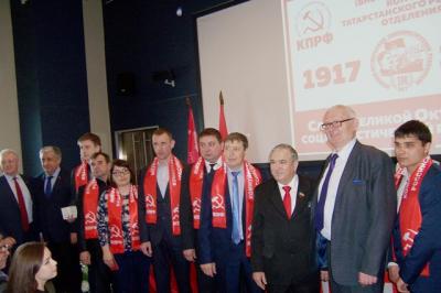 По сложившейся традиции перед началом Конференции первый секретарь Татарстанского Рескома Х.Г. Миргалимов вручил группе вступившим в КПРФ партийные билеты.