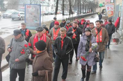 Торжественная колонна начала свое движение от здания Псковского областного отделения КПРФ на ул. Гоголя, 6. Сторонники и члены партии прошли к памятникам В. И. Ленину на площади Ленина, у Дома Советов со стороны ул. Некрасова, где состоялись митинги и возложение цветов. Перед собравшимися выступил первый секретарь Псковского горкома КПРФ Дмитрий Михайлов.
