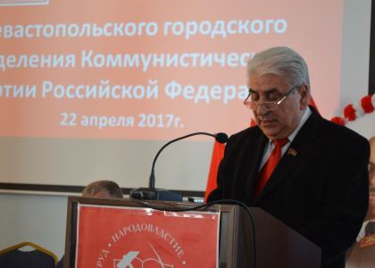 С отчётным докладом о работе Севастопольского городского комитета КПРФ выступил Первый секретарь Пархоменко Василий Михайлович. В своем докладе Василий Михайлович дал анализ выборной кампании 2016 года. Одним из положительных моментов Василий Михайлович отметил то, что по результатам выборов коммунисты получили двенадцать депутатских мест в муниципальных советах, а в совете Ленинского и Гагаринского районов созданы фракции КПРФ. Так же Василий Михайлович подвёл итоги организационной и идеологической работы городского комитета.