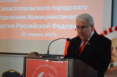 С отчётным докладом о работе Севастопольского городского комитета КПРФ выступил Первый секретарь Пархоменко Василий Михайлович. В своем докладе Василий Михайлович дал анализ выборной кампании 2016 года. Одним из положительных моментов Василий Михайлович отметил то, что по результатам выборов коммунисты получили двенадцать депутатских мест в муниципальных советах, а в совете Ленинского и Гагаринского районов созданы фракции КПРФ. Так же Василий Михайлович подвёл итоги организационной и идеологической работы городского комитета.