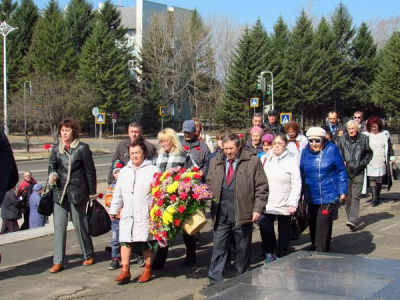 состоялось торжественное возложение цветов к памятнику вождю Великой