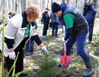 В местах, где любил гулять Лев Николаевич Толстой, было посажено более 200 елочек и около 100 дубков.