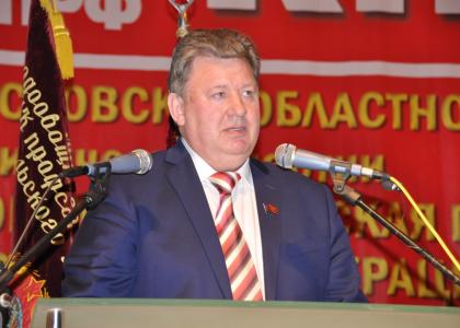 - Уважаемые товарищи! Во-первых, хочу передать вам привет от всех тех структур и организаций, которые сегодня проводят подобные конференции. Геннадий Андреевич находится здесь недалеко, в Москве, там проходит такая же конференция. Юрий Афонин в Санкт-Петербурге. Мы этой субботой практически завершаем конференции и избираем делегатов на наш предстоящий юбилейный съезд. Сегодня особым волнением наполнено начало нашей конференции. Это работа первых секретарей, наша с вами работа. Сегодня здесь мы видим молодое пополнение нашей партии, и хочется сказать слова благодарности в первую очередь за эту работу всем, кто ей занимается успешно. Подобные яркие примеры, которые показал сегодня Воскресенский район, он вдохновляет и других наших товарищей на эту работу. Сейчас принято говорить: «Время тяжелое…» А когда оно легким было? Здесь находятся обелённые сединой старшие товарищи, кто в активе у нас работает по-прежнему секретарями. У них был ли когда-нибудь выходной день в субботу или воскресенье? Всё было поставлено на то, чтобы работало предприятие, совхоз, колхоз, фабрика. Каждый человек имел возможность трудиться, учиться, получать достойную зарплату и т.д. Поэтому, время, оно сегодня спрессовано. В нём отсутствует сегодня в первую очередь справедливость, главный стимулятор движения вперёд. Чем отличался Советский Союз и программа нашей партии – она создавала систему именно основанную на справедливости. Руководитель получал зарплату не многим больше, чем средний работающий на предприятии. Первый секретарь получал зарплату в два-три раза меньше, чем лучший механизатор или доярка. Это факт! Мы сегодня перевернули систему отношений и ценностей. Мы забыли о человеке труда! О тех, кто всю жизнь отдал своей Родине – малой и большой, фабрике, заводу, колхозу, совхозу. А сегодня выдали нищенскую пенсию, и живи, как хочешь!