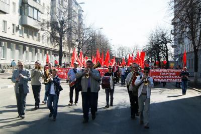 Демонстрацию возглавлял оркестр, исполнявший любимые многим советские
