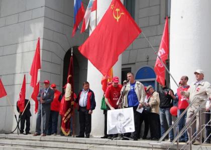 площади у Крытого рынка по призыву областного комитета КПРФ собрались участники