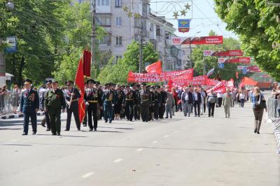 Участники праздничной демонстрации держали в руках лозунги, рекомендованные Центральным комитетом, флаги СССР, знамена КПРФ, ЛКСМ РФ, копии знамени Победы. В демонстрации приняли участие ветераны Великой Отечественной войны, труда и партии, представители Союза Советских Офицеров, Союза трудящихся города Симферополя, студенты высших учебных заведений, комсомольцы и пионеры. Колонна КПРФ под звуки духового оркестра прошла по центральным улицам города Симферополя, где их приветствовали жители и гости города. На протяжении всего прохождения звучали лозунги и призывы, обращенные к симферопольцам и ко всем крымчанам.