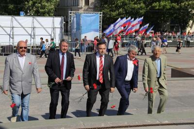 закончился возложением цветов к мемориальной доске И.В.Сталину.
