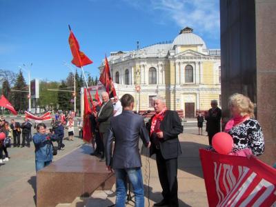 1 мая, в День международной солидарности, одну из главных улиц Тамбова – Интернациональную - украсили знамёна КПРФ. Участники демонстрации направилась к площади им. В.И. Ленина, скандируя лозунги и требования рабочего класса и рядовых граждан. 100-летие Великой Октябрьской социалистической революции Россия встречает в разгул бандитского капитализма. Рабочий класс оказался отброшенным в тёмное прошлое безудержной эксплуатации и насилия.