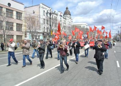 Первомайский митинг под красными знаменами состоялся на главной площади Хабаровска – площади Ленина. Идущих на митинг встречал духовой оркестр, игравший революционные песни и марши. Митинг открыл Первый секретарь Хабаровского краевого комитета КПРФ А.П. Громов: