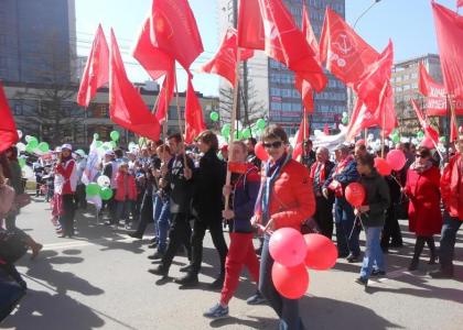 крайкомом КПРФ, прошла в общей колонне горожан, выделяясь не только красными