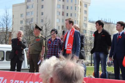 областного комитета КПРФ Антон Сидорко, отметивший классовую природу Первомая.