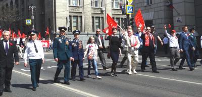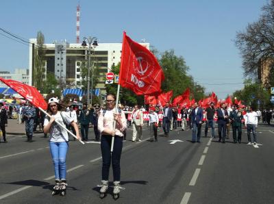 Молодежь несла огромное полотнище КРО ЛКСМ РФ, а те, кто постарше – «Дети