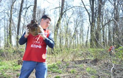 В Баташевском парке в субботнике также приняли участие секретари обкома партии: зампред областной думы, руководитель фракции КПРФ Алексей Лебедев и зампред молодежного парламента Михаил Федоров.
