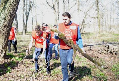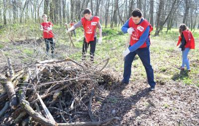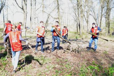 работой пообщались с молодыми сторонниками партии, затем вместе расчищали часть