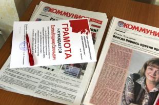 А сотрудникам редакции поистине народной газеты «Коммунист — век ХХ-ХХI» и всем, кто связан с её работой, вручила грамоты и ценные подарки.