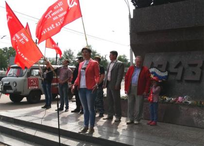 Выступившая секретарь ОК КПРФ С.И. Канунникова отметила неспокойное состояние в мире, тот факт, что время от времени к нашим границам приближается война и сказала: что пока на земле останется хоть один человек, который помнит Великую Отечественную, новая война не начнется.