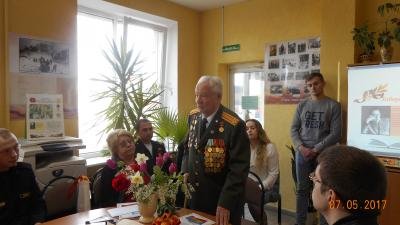 В калининградской библиотеке имени писателя-фронтовика Евгения Зиборова 7 мая прошла интересная встреча молодых солдат из воинской части №12069 с участником Великой Отечественной войны, подполковником в отставке Г. К. Герасимовым, вдовой писателя А. И. Зиборовой, блокадницей Л. К. Ткаченко и руководителем фракции КПРФ в областной Думе И. А. Ревиным.