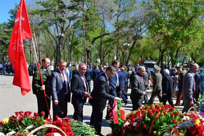 8 мая в городе Оренбурге состоялось возложение цветов к Вечному Огню на Проспекте Победы и к памятнику умерших от ран в госпиталях города на Мемориальном кладбище.