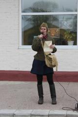 С импровизированной сцены участники митинга повествовали о подольских курсантах, бое в Калужской области, участи жертв концлагерей, о важности тыловой работы, трудностях в медицинской службе. Не забыли и про современность: участники рассказали про военный план уничтожения наций, нынешнее отношение к творцам Победы и про фальсификацию истории войны и СССР.