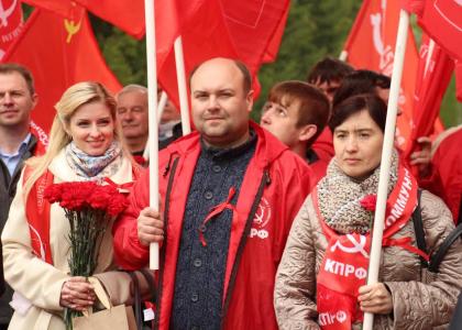 обкома и городских райкомов КПРФ, депутатами-коммунистами, активистами ЛКСМ пройдя по аллее Славы, возложила цветы к Вечному Огню. Затем
