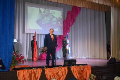 От администрации городского округа Кашира участников торжественного собрания поздравил начальник территориального управления по городу Кашира Эдуард Александрович Гречишкин. Праздничный концерт, который продолжил мероприятие, не оставил безучастным никого, зал был заполнен зрителями.