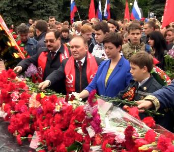Коммунисты Курска и всех районов области, их сторонники и союзники возложили цветы и венки ко всем братским могилам героев войны.