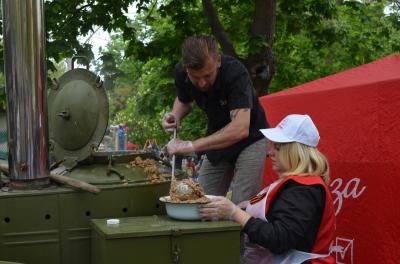 В завершении шествия Севастопольским отделением КПРФ была организованна полевая кухня для ветеранов и жителей Города-Героя Севастополя.