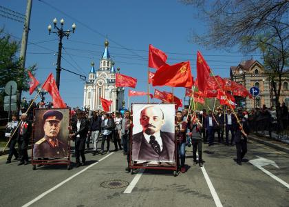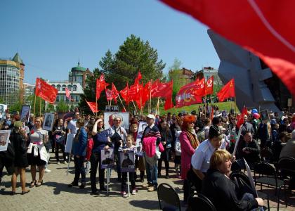 Однако, это не помешало в День Победы напомнить хабаровчанам истинное значение Дня Победы. Шествие колонны КПРФ запомнилось многим. С красными знаменами Победы, с портретами основателя Красной Армии В.И. Ленина и Верховного главнокомандующего И.В. Сталина, с пением песен военных лет коммунисты, сторонники партии и решившие присоединиться к красной колонне хабаровчане проследовали от площади Ленина до площади Славы. Пришедшие туда же участники акции «Бессмертный полк» стали массово фотографироваться с В.И. Ленина и И.В. Сталина. В нынешнем году акция прошла очень массово и среди тех, кто принес на «Бессмертный полк» портреты своих родственников, было немало людей, крепко державших в руках Знамена Победы, государственные флаги СССР и Военно-морского флота СССР. Встретились даже несколько граждан, которые принесли в колоннах «Бессмертного полка» с портретами И.В. Сталина.