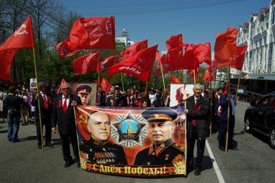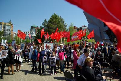 Однако, это не помешало в День Победы напомнить хабаровчанам истинное значение Дня Победы. Шествие колонны КПРФ запомнилось многим. С красными знаменами Победы, с портретами основателя Красной Армии В.И. Ленина и Верховного главнокомандующего И.В. Сталина, с пением песен военных лет коммунисты, сторонники партии и решившие присоединиться к красной колонне хабаровчане проследовали от площади Ленина до площади Славы. Пришедшие туда же участники акции «Бессмертный полк» стали массово фотографироваться с В.И. Ленина и И.В. Сталина. В нынешнем году акция прошла очень массово и среди тех, кто принес на «Бессмертный полк» портреты своих родственников, было немало людей, крепко державших в руках Знамена Победы, государственные флаги СССР и Военно-морского флота СССР. Встретились даже несколько граждан, которые принесли в колоннах «Бессмертного полка» с портретами И.В. Сталина.