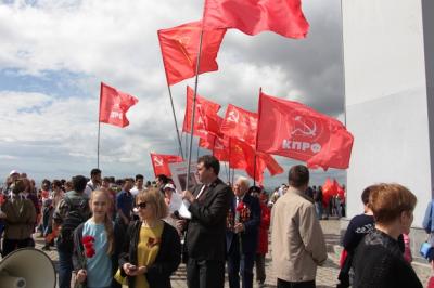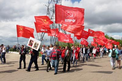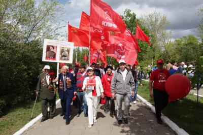Активное участие в праздничных мероприятиях приняли коммунисты и их сторонники, которые принесли с собой десятки красных Знамен Победы, КПРФ, ЛКСМ, красочные портреты И.В. Сталина, растяжки и транспаранты, посвященные Великой Победе советского народа над фашистской Германией.
