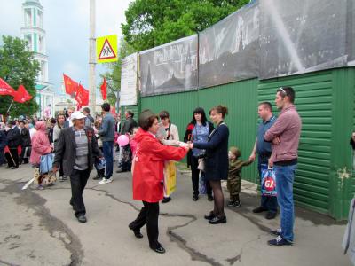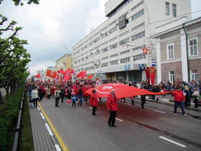 9 мая тысячи тамбовчан встретили День Победы на улицах областного центра. Коммунисты и сторонники партии приняли активное участие в общегородских мероприятиях. Красные флаги – а именно такой цвет имеет и Знамя Победы – были подняты над колонной, которая оказалась самой красочной и многочисленной.