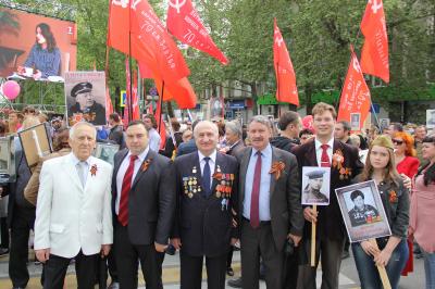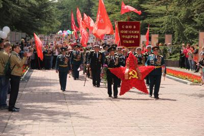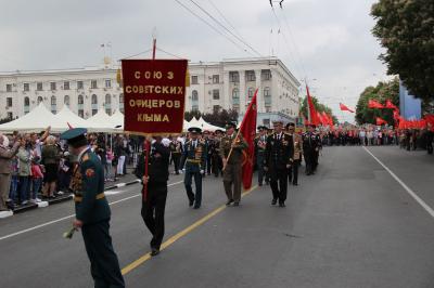 Этот самый яркий в нашей стране, поистине всенародный праздник объединил тысячи симферопольцев, пришедших целыми семьями, чтобы отдать дань памяти павшим героям Великой Отечественной войны, поблагодарить за ратный и трудовой подвиг ныне живущих ветеранов. Активное участие в праздничных мероприятиях приняли коммунисты, комсомольцы, представители Союза Советских офицеров Крыма, которые принесли с собой десятки красных Знамен Победы, портреты родных, воевавших на фронтах Великой Отечественной войны. Они прошли отдельной колонной в праздничной демонстрации.