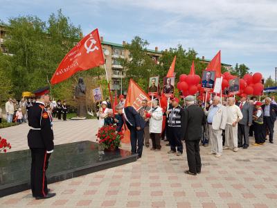 А вечером, коммунисты приняли участие в шествии «Бессмертный Полк», неся портреты своих родных и близких, победителей в Великой Войне и Знамена Победы. Комсомольцы и молодые коммунисты несли портреты Верховного Главнокомандующего, Командующих фронтами, Молодогвардейцев и Пионеров Героев.