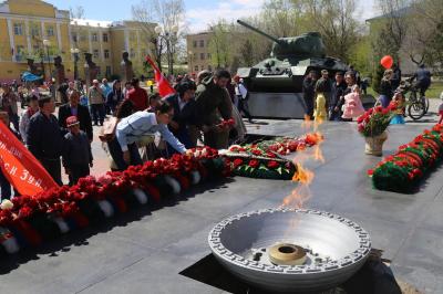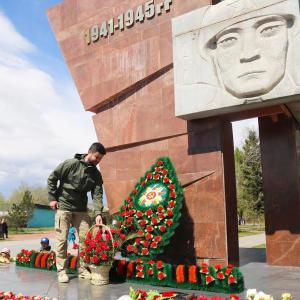 На возложении цветов на Площади Победы примечательно то, что корзину с цветами от коммунистов несла дочь одного из двух тувинцев-добровольцев, Героев Советского Союза, танкиста Хомушку Чургуй-оола Ира Хомушку. А второго Героя Советского Сюза Кечил-оола Тулуша тоже представляли в «Бессмертном полку» многочисленные родственники.