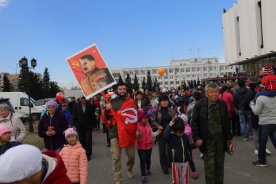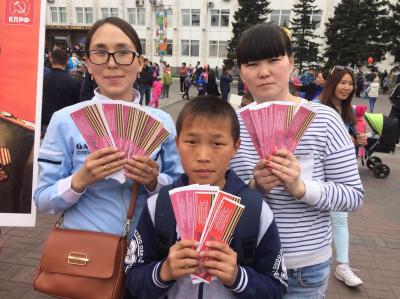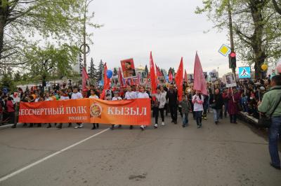 Коммунисты Тувы прошли во главе колонны «Бессмертного полка» под Знаменами Победы и портретом Сталина, а после шествия раздали флаеры со Знаменем Победы, Гвардейской лентой и данными Тувинского рескома КПРФ. Также они возложили цветы на площади Победы в г.Кызыле к памятнику участникам Великой Отечественной войны, тувинским добровольцам, геройски сражавшимися с фашистскими захватчиками.