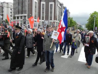 По уже сложившейся традиции шествия «Бессмертного полка» в Белгороде, белгородские коммунисты и их сторонники – представители Союза советских офицеров, ДПА, организации «Дети войны», Комсомола, движения «Русский лад» - шли своей колонной. Как и в прошлом году, её отличала высокая организованность (не зря же в ней было столько советских офицеров). Колонна шла под красными знаменами, многие её участники несли не только фотографии своих отцов, дедов и прадедов, защитивших социалистическое Отечество в Великой Отечественной войне, но и Верховного Главнокомандующего И.В. Сталина.