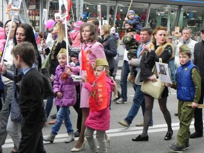 флагами шли молодые люди и молодые семьи. Запомнилась семья: мальчик лет шести